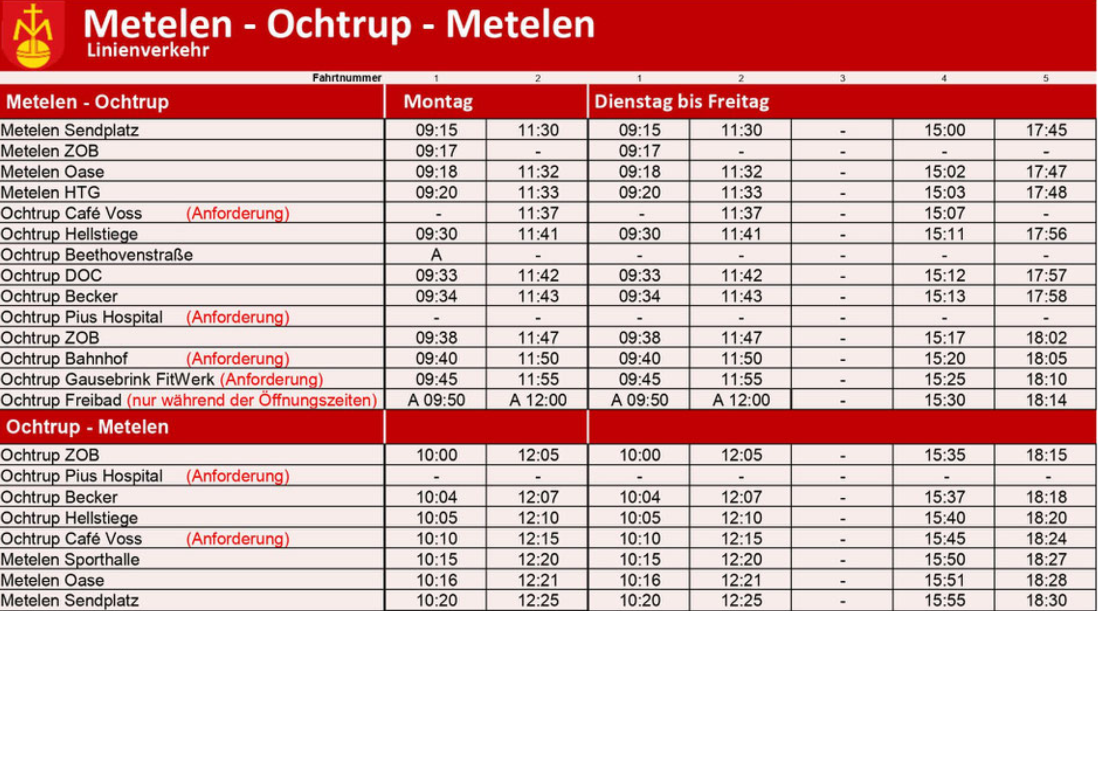 - Die Tarifbestimmungen gelten für die Beförderung von Personen sowie für die Beförderung von Sachen und Tieren auf den Linien der BürgerBusse Ochtrup Schöppingen.